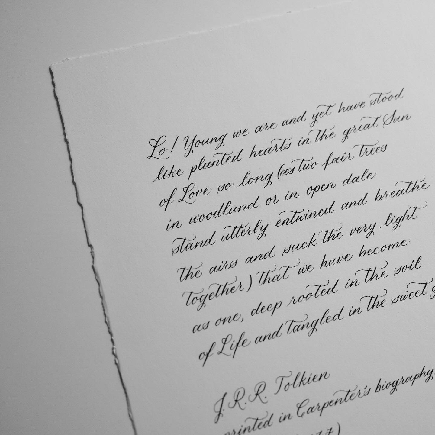 everything from handwritten envelopes for your invitations, fully calligraphed menus, beautifully inked place cards, and engraved fragrances.