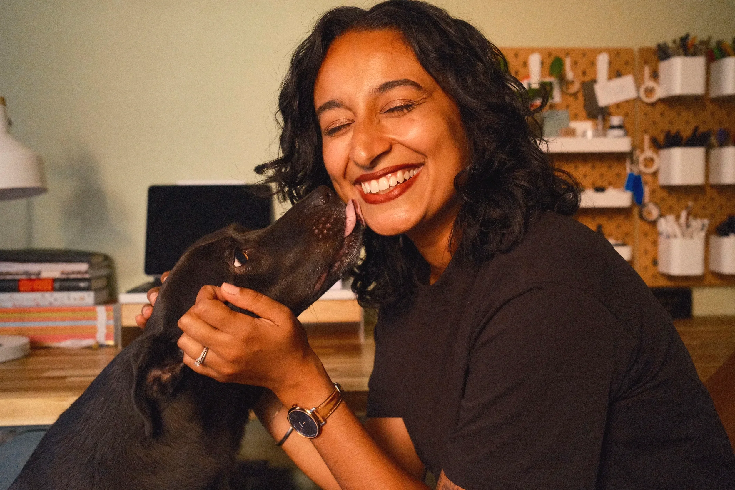 The team also includes Kaju, her rescue dog, but he is still an unpaid intern until he can learn how to respond to emails.
